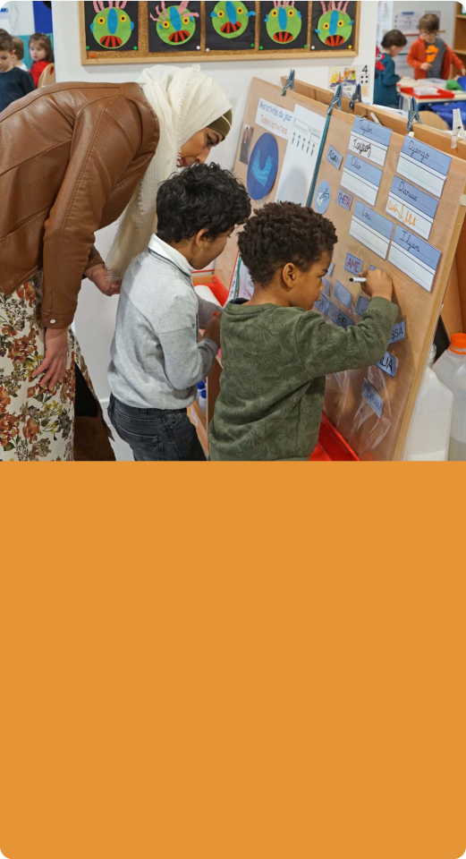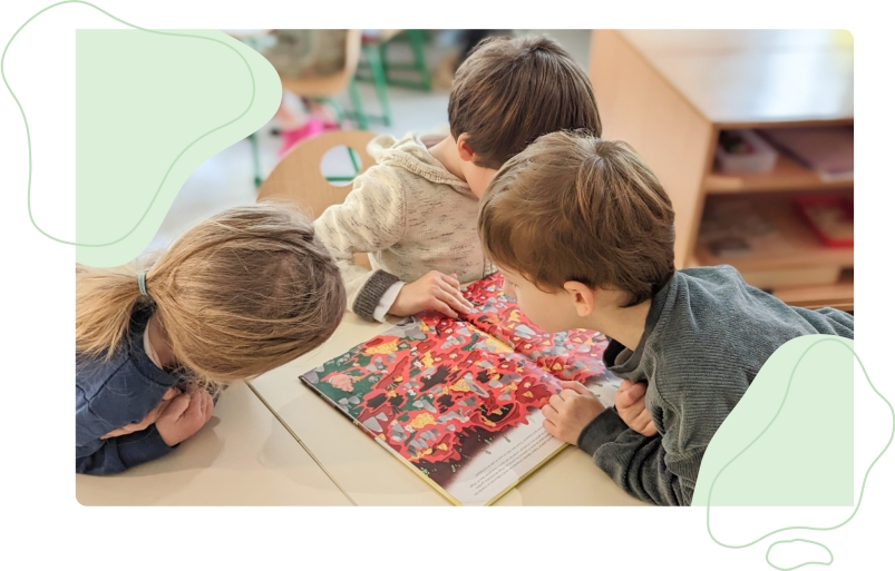 Avec 3 adultes pour 21 élèves, les activités et interactions en petits groupes se multiplient, favorisant l'individualisation des parcours. En collaboration avec les familles, l'école M fixe des objectifs personnalisés et suit les progrès de chaque enfant.
